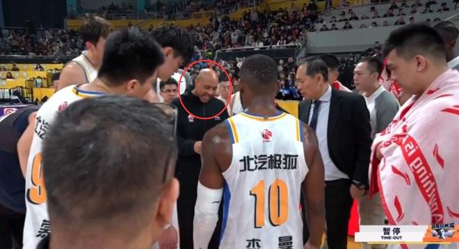 来看看比赛最后阶段发生了什么?在胡金秋最后2罚打进后,广厦领先3分留给北京最后6.1秒绝平机会,暂停期间,作为北京主教练的许利民并没有拿起战术板布置最后一攻战术,而是把布置战术的任务交给了外教布鲁顿。