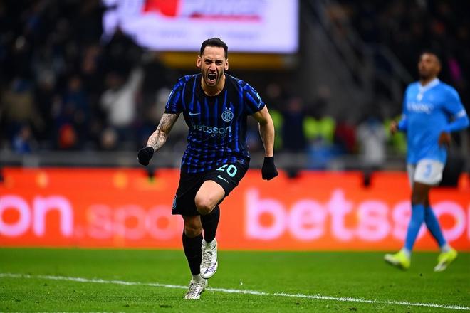 下半场易边再战第47分钟,萨维奇后场大脚长传,霍依伦中圈启动利用速度优势甩开阿坎吉单刀推射远角击中了立柱;那不勒斯之后用连续的传导和压制占据着主动权,这让国米的中场开始失控;齐沃果断用姆希塔良换下泽林斯基加强控制。而这次换人还取得意外效果;第72分钟,姆希塔良领球进入禁区被拉赫马尼一脚踩到了脚踝,主裁判观看回放后吹罚点球,孔蒂不满判罚情绪激动出言不逊被红牌罚下,恰尔哈奥卢没有浪费机会一蹴而就,2:1!